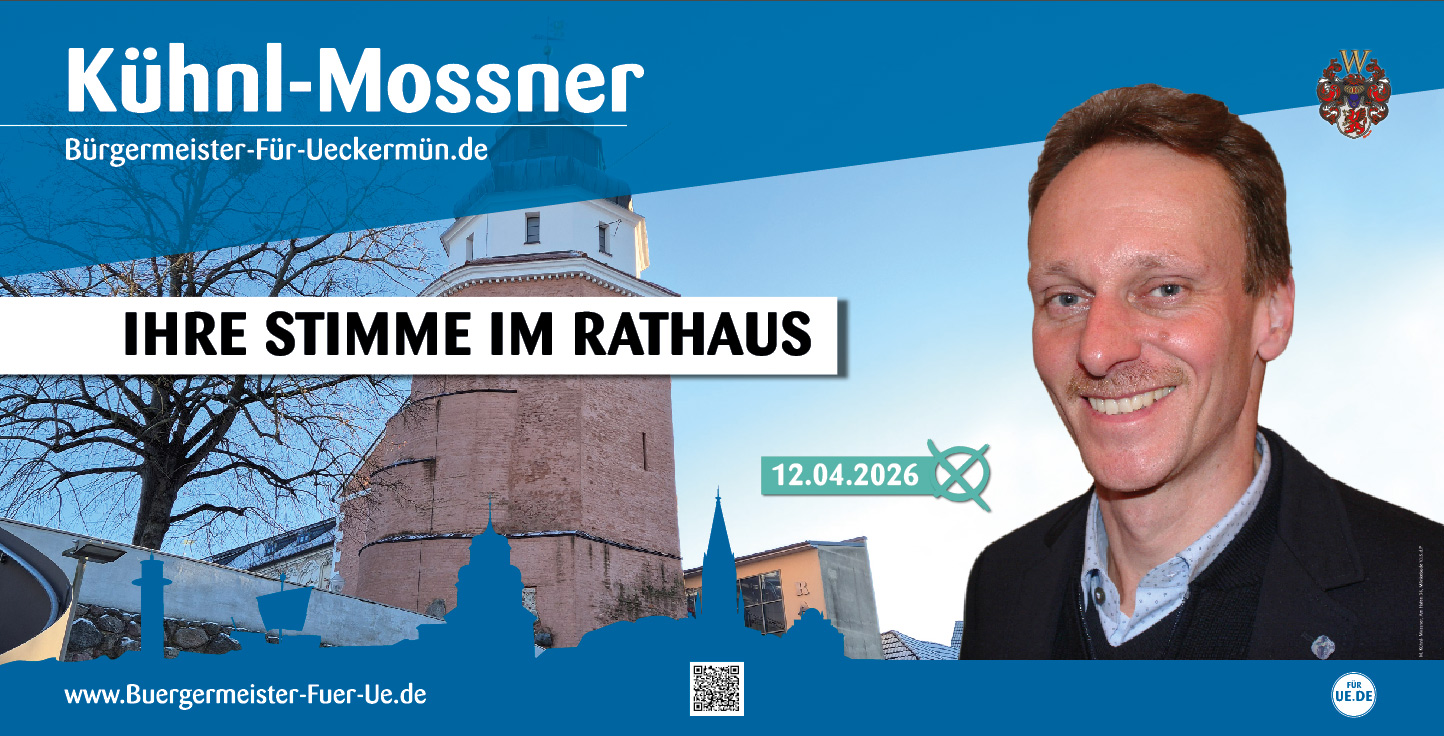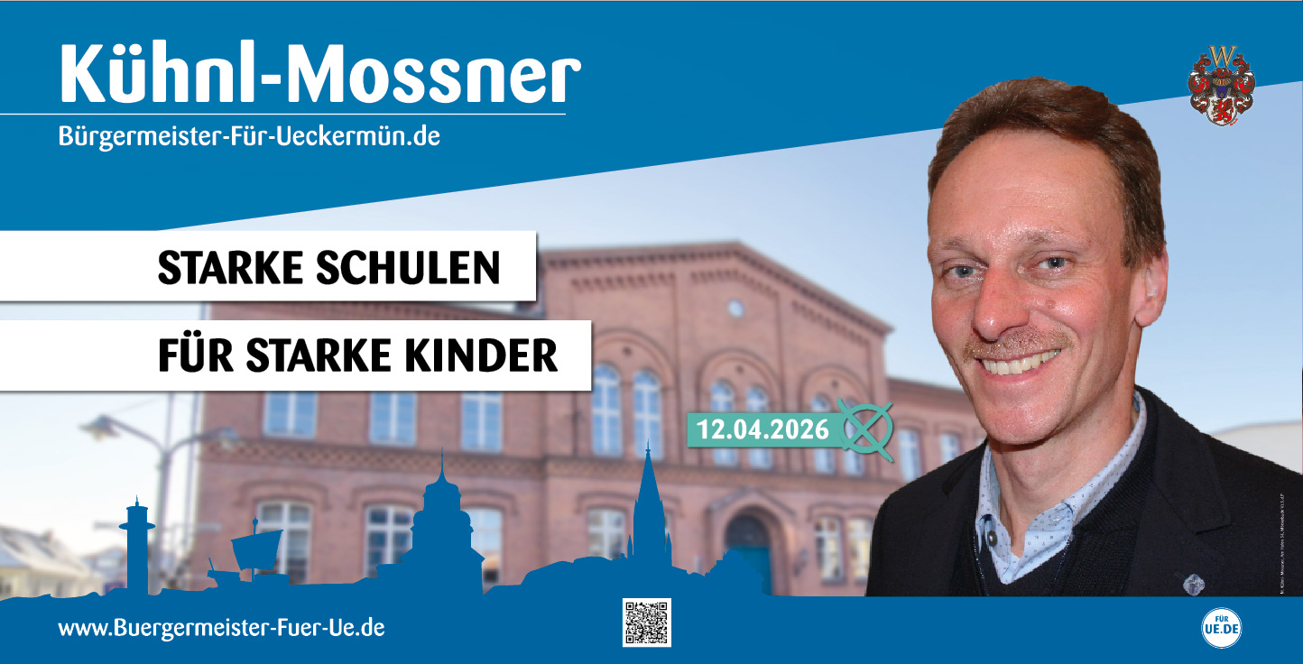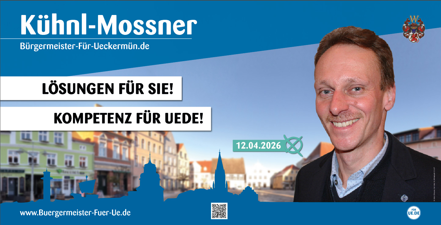 Erkunden Sie unsere Banner, die eine Auswahl an Plakaten zeigt, die den Fortschritt und die Initiativen der Stadtverwaltung Ueckermünde hervorheben. Perfekt, um das Engagement des Bürgermeisterkandidatens zu visualisieren.