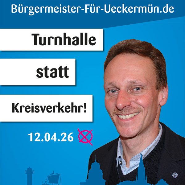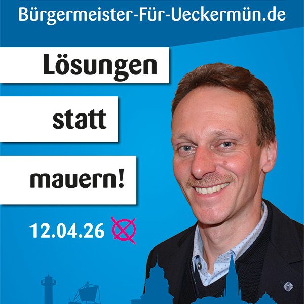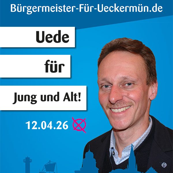 Entdecken Sie die Plakate und Grafiken, die der Kampagne für den Bürgermeister für Ueckermünde zugrunde liegen. Diese Bilder erzählen Geschichten, informieren die Bürger und zeigen die Fortschritte, die wir in der Stadtverwaltung erzielen wollen.
